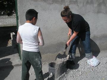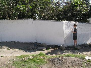 I look in front of me and I see Marisol (the owner of the home and sweet friend) a little ways ahead. I playfully run up next to her and pass her as if to race her to the dirt pile. She begins laughing with joy.