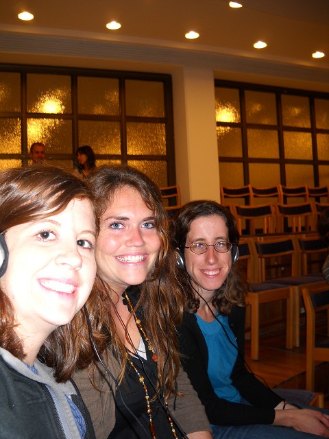 As we walked up to the church we were greeted by this family and headed to our seats in the auditorium. Expecting a traditional Serbian message; Hollis, Leize, and I, were stopped by a man and asked if we needed someone to translate for us. Once we said “yes,” the man led us upstairs to the balcony and handed us each a pair of headsets. Every few minutes we would put them up to our ears and see if they were working. We could hear that the headsets were on but couldn’t quite figure out how this was going to work. “Did they have a computer program to translate the message? Or was a person going to do it? And what were the headsets for?