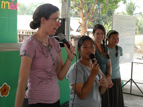 We rode a Karaoke Bus to camp; flashing lights and all!