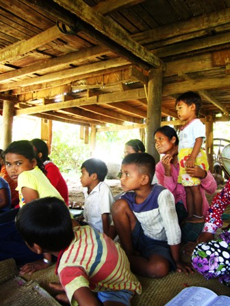 A wooden house on stilts… filled with over thirty pairs of hungry brown eyes, waiting for us as we climb up the ladder to join them.