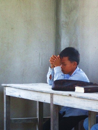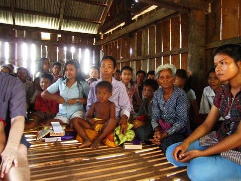 Bamboo mats lining the dirt floor beneath a stilt house… comforting as we sing hymns and clap.