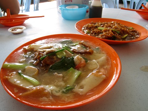 A typical meal here in Malaysia served with rice and Chinese tea.