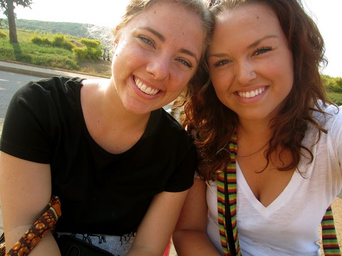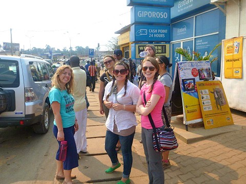 waiting in town for the bus on our first day of ministry