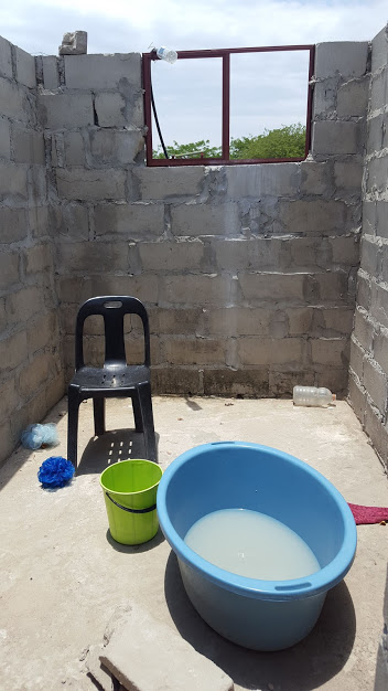 3. THIS was my shower situation. No door, no window, no roof. I filled up water from a spicket into the green bucket, stood in the large basin, and went to town. Although I had absolutely no privacy, I got clean and smelled better than before lol. I also made sure to do it at night, which was a little creepier with all the spiders, but at least people couldn’t see all of me. Also, after 4 days in the bush, we were told that there’s a hose connected to a water bottle full of holes which poses as a shower. Life changer!