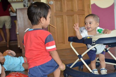 [Cedric (in the walker) and Kenth – boys in the nursery at the orphanage]