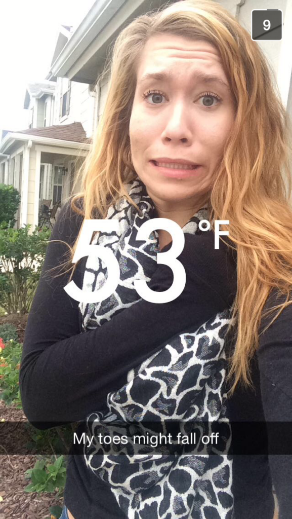 Some of my squad mates, like Miss Marlo have been sending me snapchat selfies saying that they’re freezing…they’d never survive in Colorado haha