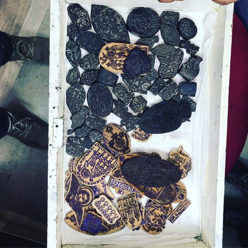 Generations before my artist’s time, his ancestor carried over stamps carved in wood, used to make the outline for the stick and poke tattoos done back in their day. And today, I was going to get to choose one of those wood carved stamps, that carried so much history.