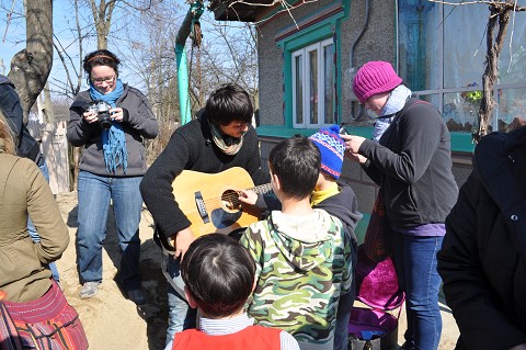 Phil playing guitar for the kids in one of the villages we delivered shoeboxes, food, and clothing to.