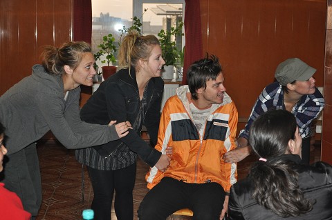 Performing a skit for the girls about the nature of sin. It’s sticky and it sucks you in! Then Jesus comes in at the end and breaks its ties.