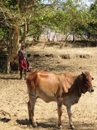 A Maasai boy watching his cow.