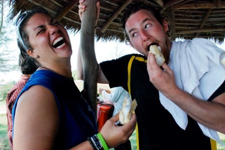 Katie and Carl experiencing the Cambodian version of an ice cream sandwich.