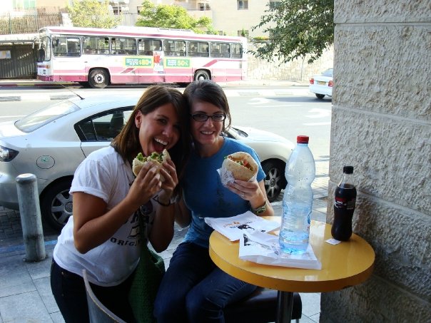 Jared and I ate Falafel’s almost everyday while we were there…they are so good! There are falafel stands everywhere around Israel. here’s a picture of Jessica and I eating a wonderful Falafel!