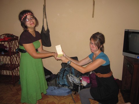 Without further adieu, here is my lovely team. Drum roll please…Samara Murtaugh coming in with a brand new coat that drags on the ground (Team Leader), Sarah Bousquet with the nicest coinpurse this side of Meekon River (biggest river in Asia), Erin Thames with a scroll of encouraging words and guitar cords, Kelsie Funk with a smile that will knock anyone’s socks off, Katie Hines with the moves that will give Beyounce a run for her money, and myself. We are Team UNDIGNIFIED and ready to dance ‘naked’ before the Lord!