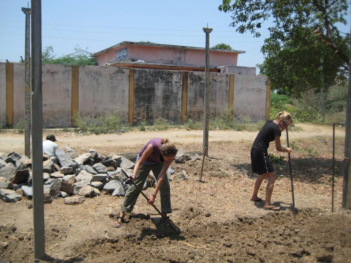 Working in the India heat (100-110 degrees each day)was a challenge as were the men laughing at while we were working. They gave us iron rods with an edge on them to dig two feet deep holes where the columns were put. Nine holes. Eight blisters.