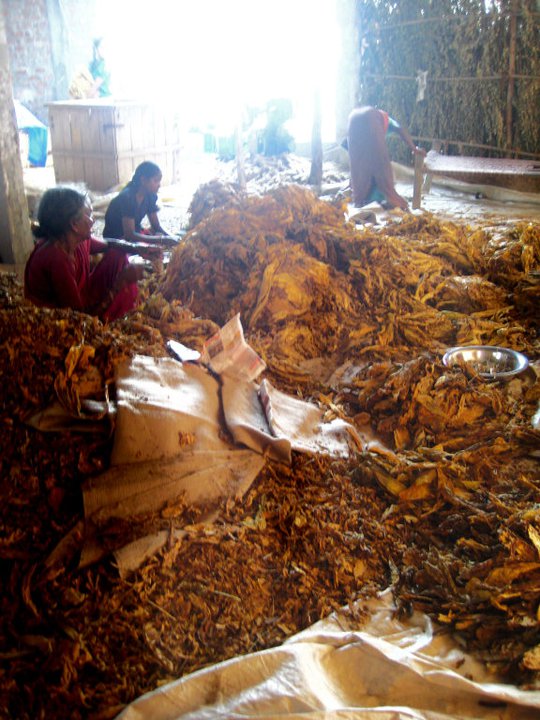 The next day, a few of us went back. Sorting tobacco leaves is a woman’s job and the men who work there supervise or pack crates with the leaves. The guys on our team had to sit and watch while we got to help. The men are paid 250 rupies($5.50USD), while the women get 100($2.20USD). Fair? From what I saw, no.