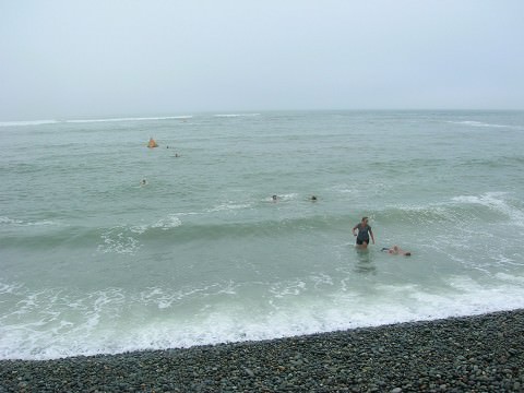 From the park we ran down to the water and had to choose 4 team members to swim out to the orange float and back relay style.  It was freezing cold, decent sized waves, and lots of fun!!