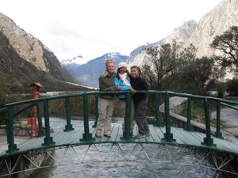 Striking a pose 🙂 Behind us are the glacier lakes of Huascaran- crystal blue