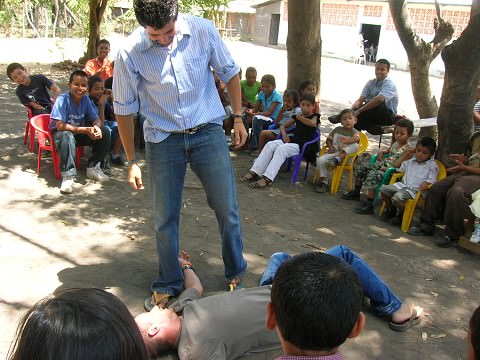Teaching Sunday School- We sang some Spanish kids songs, taught the story of David and Goliath – first read it in Spanish and acted it out, then gave them the chance to do the same…they loved it!- taught a memory verse, then made cross neclaces with them out of nails and wire