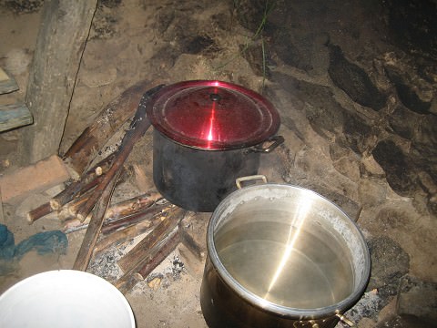 We awaken early each morning to the smell of campfire smoke, where all of our food is cooked.