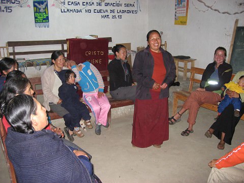 BEAUTIFUL! This church is very formal in it´s meetings normally, so first I shook this up with games, snacks, singing- just having fun. Then I asked the women who wanted to be thought of as beautiful- they shyly looked around and then shot up their hands! I don´t think that many of these women have ever been told that they were beautiful- and they live a very tough, hardworking life! We talked about how the Lord loves us before we even loved Him, that we are the crowning point of creation (more beautiful to God than these breathtaking mts that surround us!), and that He created us each uniquely and with such beauty. We also read passages of how He speaks tenderly to us! Their faces softened as they heard this message. I then shared how the Bible is God´s love story to us and how He wants an intimate relationship with each of us- this really spoke to their hearts and a few of them wanted to start this relationship with the Lord! It was such a sweet night with the women and the presence of the Lord! No one wanted to leave! 🙂