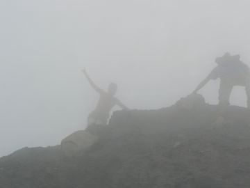 Conquered!! Here I am at the rim…woohoo! The winds, fog, and sulfur fumes were very strong…so the guide took us up the last few yards one at a time! CONCEPION Volcano- 1610 meters up, 10 hrs up and back b/c of having to walk so carefully for about half of it!
