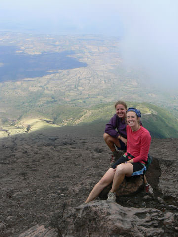 Conquered!! Here I am at the rim…woohoo! The winds, fog, and sulfur fumes were very strong…so the guide took us up the last few yards one at a time! CONCEPION Volcano- 1610 meters up, 10 hrs up and back b/c of having to walk so carefully for about half of it!