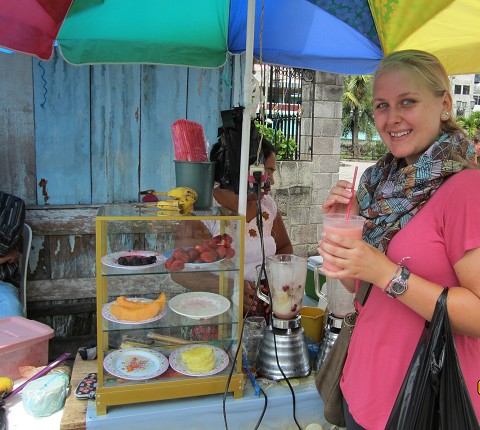 The pastor's wife makes us dinner each night, and she is very happy to accommodate a vegetarian. We buy and make our breakfast and lunch separate from the family and it usually consists of cereal at the house and tacos in the village. And when one of us gets constipated, which actually happens a lot, we buy smoothies from the sketchy street carts in hopes it will solve the problem.