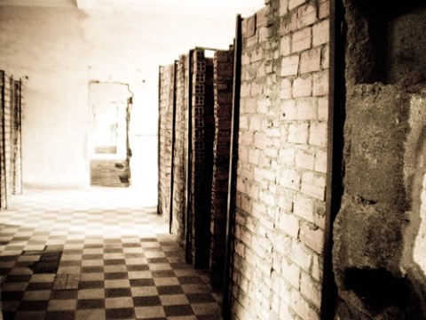 he and his wife were taken captive in 1978 by the khmer rouge regime. he was split up from his wife and put into the torture chamber we stood in today. he was held captive there for four months before being rescued by the vietnamese army. during his time in the torture chamber he was confined to a small brick cell with nothing but a small box to go to the bathroom in. he was given only two small handfuls of rice porridge each day. his hands and feet were shackled while he was beaten. if he made a sound they would beat him more. he told us of a time when his back was so swollen from the beatings that he couldn’t bear to have it touch anything. he tried to sleep sitting up but the guards made him lay on his back, forcing him to endure the excruciating pain. all he could do was cry silently. screwdrivers were lodged into his toe in an effort to pull it off. he was given electric shocks twice everyday and as a result is blind and deaf on his right side.
