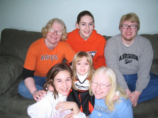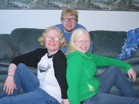 The three of us are super close and always have been. Don’t get me wrong we have fought (and still have our moments) like siblings do, but when it comes down to it we are there for each other. I think we’re so close partly because there is a very small age gap (4 years between me the oldest and Teresa the youngest), and because we are all three albinos (which in itself is sorta a medical marvel). Espically when we were young we stuck out amoung other kids, but we never had to feel like we were weird because we knew there were at least two other people just like us.