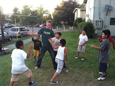 JD playing “Ninja” with some of the local kids during an outreach in Santa Rosa, CA