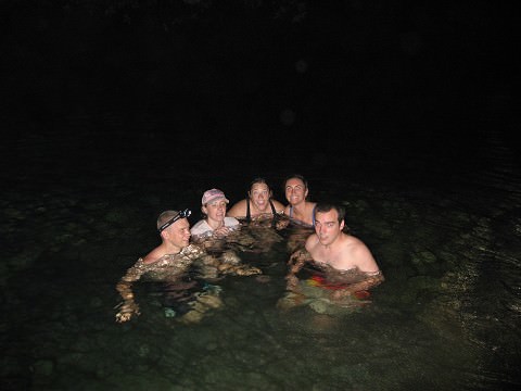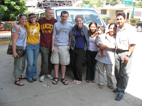We hurried as fast as we could to get packed up and then all changed clothes to jump in the river. It was pretty crazy everyone running around like madmen. We took our picture in the water, dried off, got dressed and took off. We had made plans to have a van take us to the border of Guatemala. We were a little worried for awhile becuase we got a note on friday that said that we could not leave until 12 pm and our destination was Lake Atitlan. We had made the arrangment for 6 because we thought that is when we would be leaving. And they also told us that if we left before 12 we would incur a penalty so we never canceled our plans just in case they were thinking about playing a trick on us. Like they like to do most of the time.