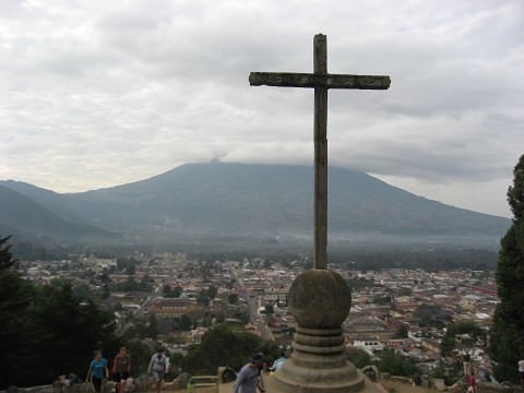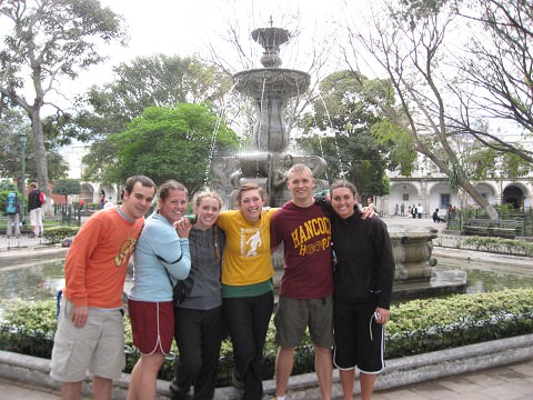 We finished our prayer and then back down the hill to our Took-took that was waiting. Team 61 had this bright plan because we only need 4 people of our team to participate in the race. And Josh is a crazy fast runner. So they sent 3 people and Josh to the top of the cross and then sent 3 other team members to the fountain finish line. So not the whole team had to race just him. So Josh and Hannah who also was on 61 passed us running down the hill. Our whole team crams in this little took-took that has a moped engine in it and is way over capacity and take off after them. They are probably about a half a block ahead and we are not gaining on them because Antigua is all cobblestone streets and a speed bump every couple of feet. We finally catch a straight away after 5 or 6 blocks and pass Josh up. The took-took can�Lt go all the way to the centre so our whole team gets out and sprints the last block to the fountain and claim the victory by one minute over Team 61.