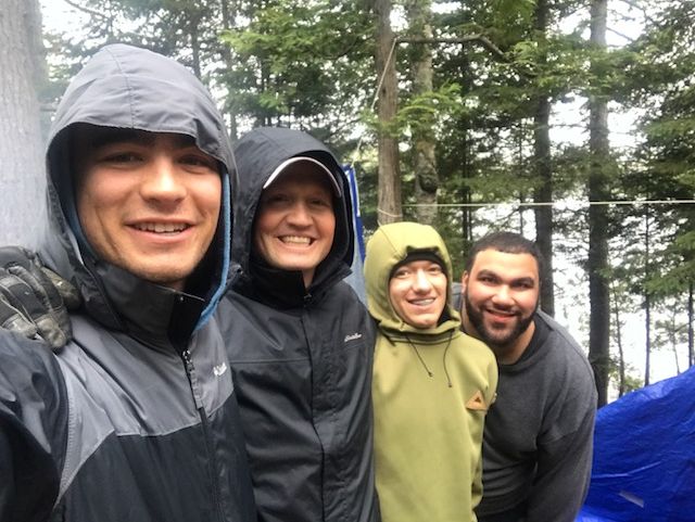 Now, here is the thing… in the boundary waters everyone packs up camp and goes to find a new campsite in the morning, so we had a really late start. In fact, when we started canoeing we couldn’t even find a campsite! We made it to the very end of the lake after paddling 3+ miles and praying that there would be something open and we found one. It was still raining off and on and the wind died down a little bit. Lots of the guys were freezing cold with lots of wet clothes.
