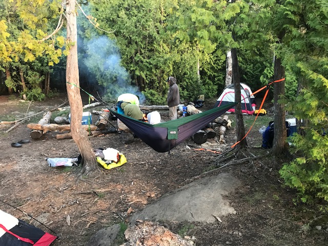 We set up our tents and everyone crashed pretty quickly because we were all trying to stay warm. The next morning everyone woke up to rain and more wind. It was cold. We even realized we didn’t have any plates, so Sam (the Youth Pastor) and I paddled back to the outfitter to get some. On our way over we were talking about making this trip about God and placing Him first and foremost on this trip. So when we got back to camp, we decided to have devotionals and hang out before we went and found a campsite.