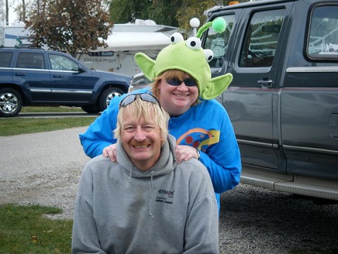 My dad and Angel camping at Poncho's Pond on Halloween weekend