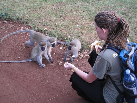 feeding wild monkeys on prayer mountain