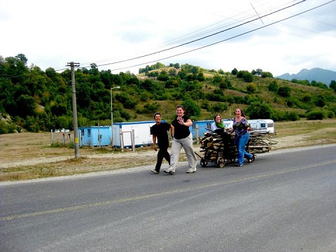 While on our way to Bran Castle, (Dracula’s Castle) Becky (Our Amazing American contact in Romania) saw a lady on the side of the street trying to pulling her cart out of the ditch. Becky pulled over and the team together pulled the loaded cart out of the ditch. We asked her how far her house was so that we could help her the rest of the way. She pointed to a location that was a short distance from where we were. I thought oh we got this! Her house ended up being 3 km away, and part of the distance was up hill and down which made it AWESOME. Our new friend thought it would be fun to run with the cart. :/