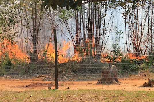The fire began again the next afternoon when playing with the children. Some of the girls were showing me a blackberry tree as I saw the smoke and heard the crackle of the fire get closer from just across the fence. Even though our preparation for this journey never included how to fight fires, God gave each of us the stamina, wisdom, and strength to aid in any way possible. The guys put their soot-covered fire clothes and shoes from the night before back on and bravely went back into the heat. Each guy found a hose, water tank extinguisher, or tool to smoother the fire.