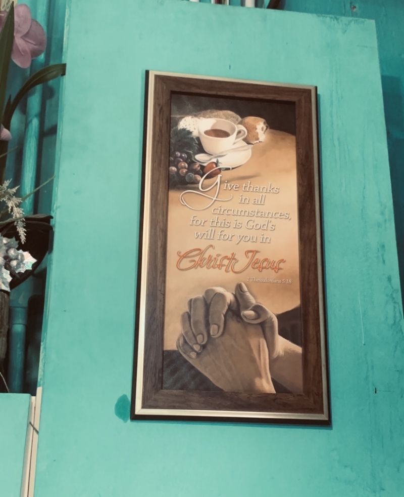 We boldly chatted through a beautifully fruitful conversation with ‘Rick.’ The Lord led the whole thing and kept us fearless. We listened to some of Rick’s story (turns out he was actually a fighter in his career) and upon his decline out of embarrassment to do so in the coffee shop, committed to be praying for the requests he asked us to pray towards. As we spoke with him, I noticed a square frame on the wall above his seat that had printed, “Give thanks in all circumstances, for this is God’s will for you in Christ Jesus.” (1 Thessalonians 5:18) We were shocked to see this, as we’d been sitting there for a few hours and had yet to notice it on the wall before. We pointed it out to him, shared our perspective on it, and with smiles and joy, headed on our way to lunch. Annie and I reveled in the sweetness of that afternoon and “going back.” One because it was crystal clear what the Lord wanted us both to do, and it was better because we got to do it together.