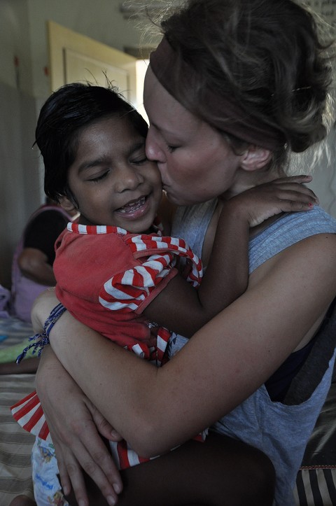 I remember the moment I first saw her: she was in the immobile girls' room at Sarah's Covenent Home in India and was being hand-fed her breakfast by one of the ayahs. She caught my eye and the moment she did, her face burst into an uncontrollable smile as though she had been waiting for me all her life. The bleak conditions at the orphanage seemed to have no effect on her. She could not walk, which I later found out was due to Cerebral Palsy, but she moved about in a hip-hoppity motion like a little frog on her knees, the sparkle in her eye never faltering.