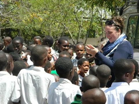 at a school outside of Arusha singing and playing with the students