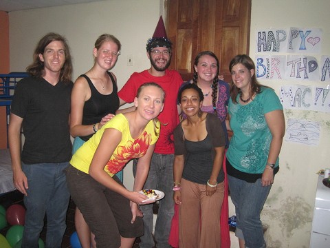 After Thanksgiving at the orphanage, we all joined together to throw Mac a surprise 29th Birthday Fiesta! We blew up balloons, bought him funny toys for presents, made two cakes (Betty Crocker box cake, just like from home) and drew him a banner/sign. Mac came back from town after Skyping with his family and we told him we had to do feedback so he was completely surprised when he walked in to a room full of screaming racers throwing balloons and singing the birthday song. Even though fourteen World Racers in one stuffy room with no fans and no ventilation is extremely hot (especially if you have overactive sweat glands like me) it really was the perfect way to end such a happy day. I have so many things to be thankful for this year.