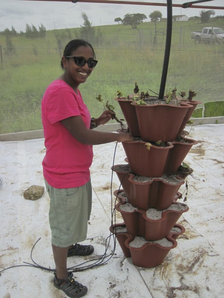 6) The strawberry garden and irrigation system we helped set up