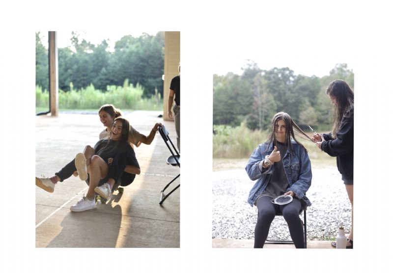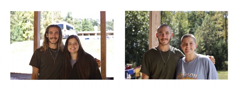 other than our campsites, the main place gap d would hang out was the pavilion. we ate all our meals here, had some team times when it was warm, played knockout, learned how to skateboard, and of course, cut people’s hair. one of my squadmates brought hair cutting scissors and another one had done it before, so it was only a matter of time before the haircuts started (where else were we going to get our haircut?) and so the pavilion also became a salon. one of the most memorable days from our time in gainesville was when Kaylin and Max shaved their heads (see before and after pics below). Kaylin has a whole blog written about why she did it (read it here!) and Max had said at the beginning of the race that if any of the girls shaved their head, he would too.