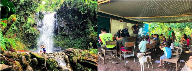 The top picture is from a waterfall hike that we went on in Boquete, Panama. It was absolutely beautiful! The bottom picture was taken at Oma, which is an indigenous reservation that we would do ministry at. The conditions here were very poor. This pictures shows a classroom where we would sing, teach English, and do crafts with the kids. The desks were falling apart, there was trash everywhere, and chickens running around, but the kids were very engaged.