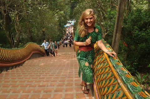 Climbing a hundred steps to a Buddhist temple…