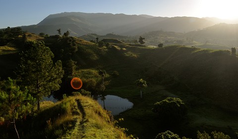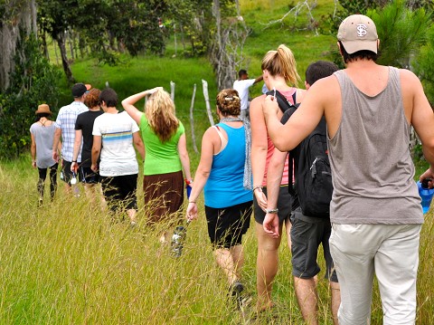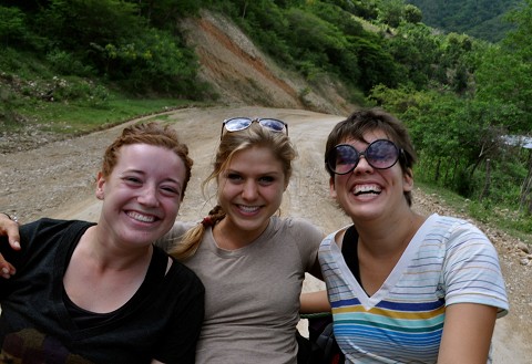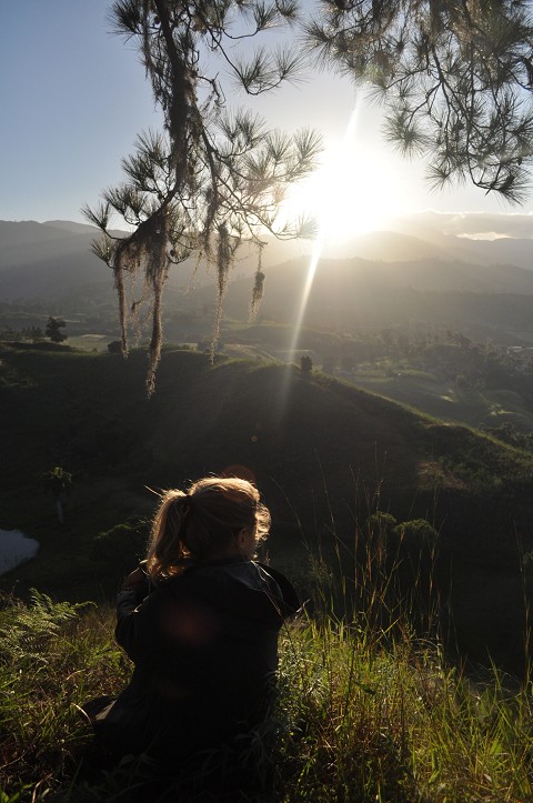 four girls on my team and I climbed up the nearest mountain to watch the sunrise.