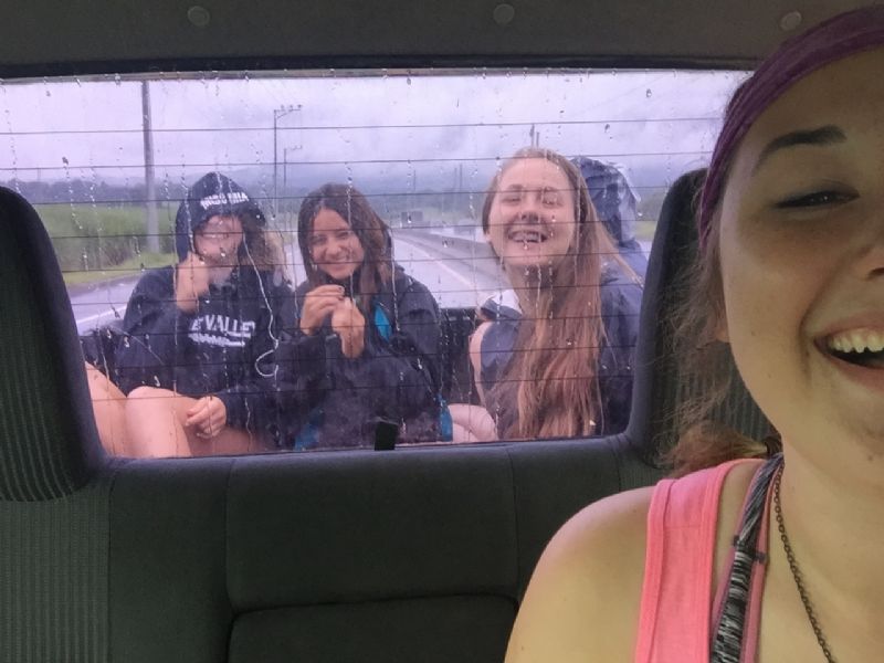 On the way, some of the girls decided to ride in the bed of the truck in the rain. Here is a beautiful selfie from inside the warm cabin!