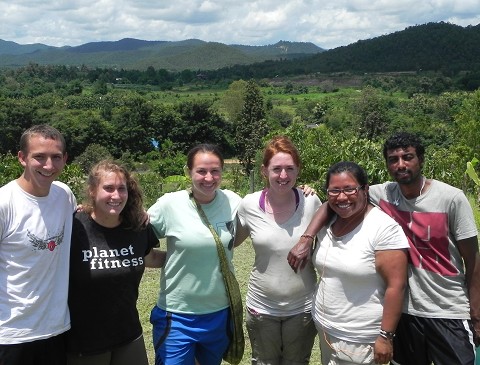8:00 am – Start work! the beginning of the month included work on the volunteer house we were staying in. We put up sheetrock, stained & installed windows, tried to avoid staring directly into the blowtorch whenever Rock was welding (why is that so tempting?), filled in the holes in the road, dug up big rocks like burly mountain women, and cemented various things. After the first week, we usually loaded up the songtails (awesome trucks with coverings over the bed) and headed over to the “new land”. The organization recently acquired this property to build a new girls house on, and it was a messy lot of overgrown orchards, waist high grass, and various dead branches everywhere. By the time we left, we had made a dent int he craziness, but there’s still a lot to go! I enjoyed doing labor & working hard, especially since we got to see immediate progress.