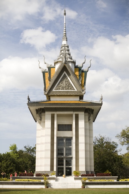 Buddhist stupa was built as a monument at the Killing Fields, and holds